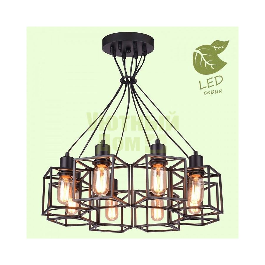 Гарантия, месяцы: 24; Диапазон рабочих температур: +1-[+35]; Класс электробезопасности: I; Материал арматуры: металл; Напряжение питания лампы, В: 220; Основной материал арматуры: металл; Тип цоколя лампы: E27; Тип цоколя лампы основной: E27; Материал плафонов и подвесок: металл; Направление плафонов: вниз; Основной материал плафонов: металл; Поверхность плафонов и подвесок: матовый; Поверхность арматуры: матовый; Количество плафонов: 8; Общее к...