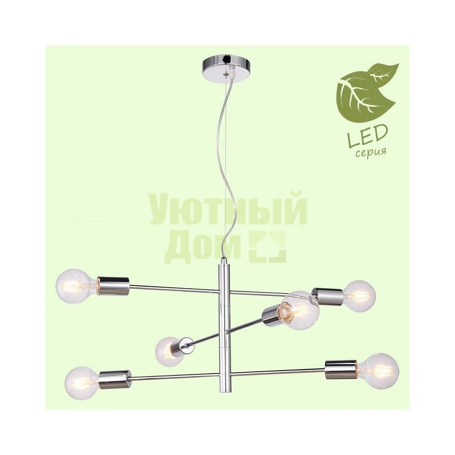 Гарантия, месяцы: 24; Диапазон рабочих температур: +1-[+35]; Класс электробезопасности: I; Материал арматуры: металл; Напряжение питания лампы, В: 220; Основной материал арматуры: металл; Степень пылевлагозащиты, IP: 20; Тип цоколя лампы: E27; Тип цоколя лампы основной: E27; Поверхность арматуры: глянцевый; Общее кол-во ламп: 6; Основной цвет арматуры: хром; Цвет арматуры: хром; Возможность подключения диммера: нельзя; Тип лампы: светодиодная [LE...