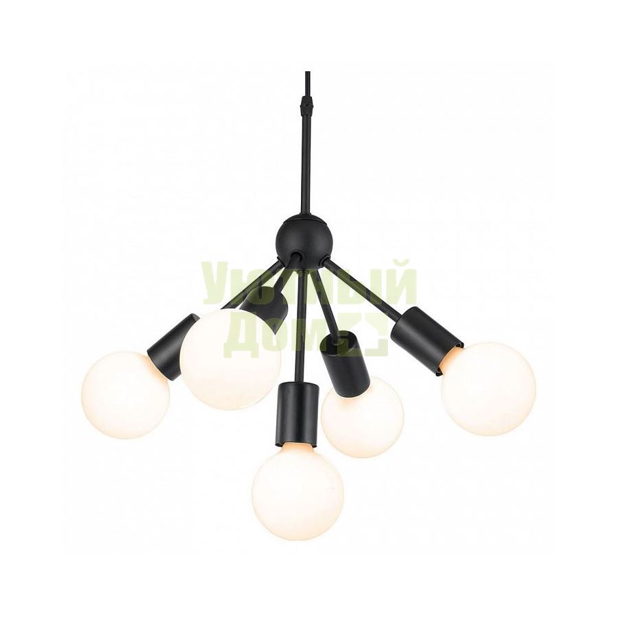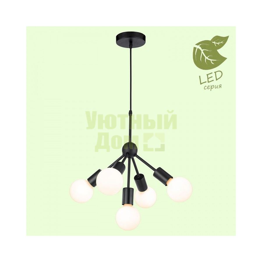Гарантия, месяцы: 24; Диапазон рабочих температур: +1-[+35]; Класс электробезопасности: I; Материал арматуры: металл; Напряжение питания лампы, В: 220; Основной материал арматуры: металл; Тип цоколя лампы: E27; Тип цоколя лампы основной: E27; Поверхность арматуры: матовый; Основной цвет арматуры: черный; Цвет арматуры: черный; Общее кол-во ламп: 5; Возможность подключения диммера: нельзя; Тип лампы: светодиодная [LED]; Тип лампы основной: светоди...
