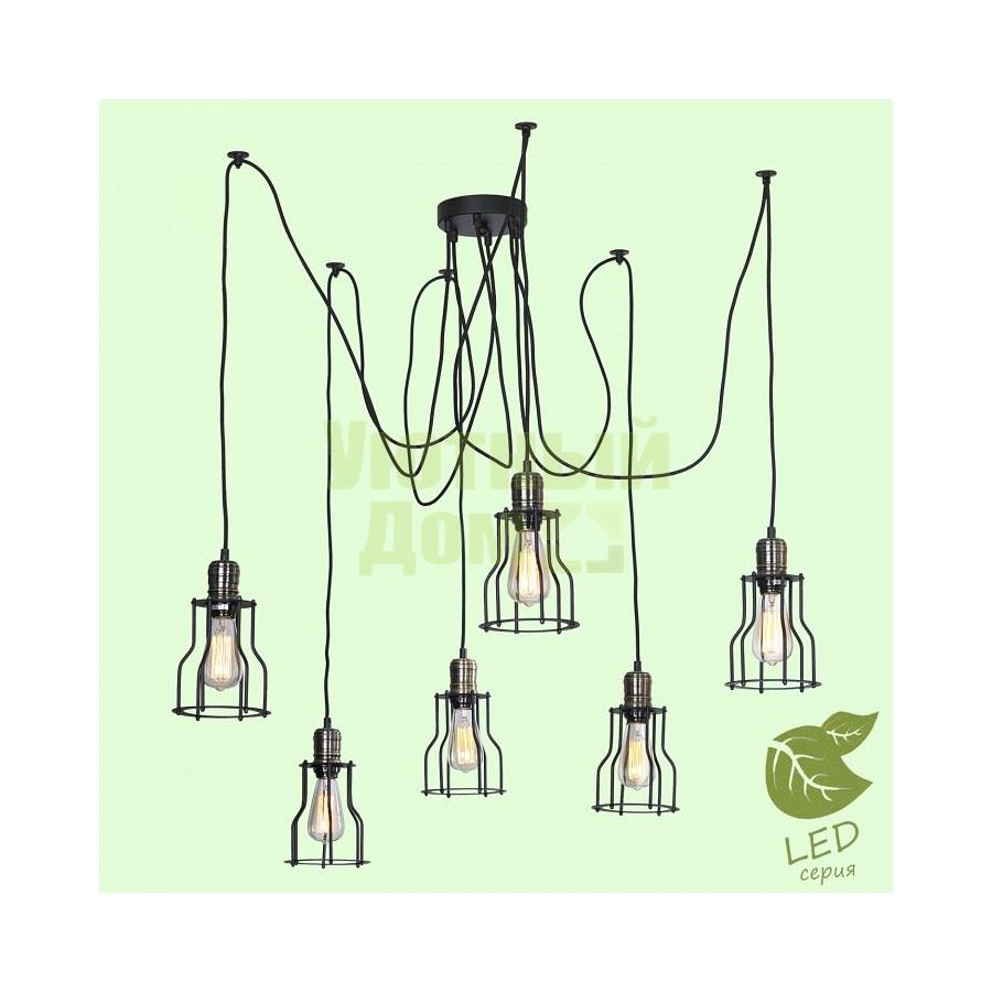 Гарантия, месяцы: 24; Диапазон рабочих температур: +1-[+35]; Класс электробезопасности: I; Материал арматуры: металл; Напряжение питания лампы, В: 220; Основной материал арматуры: металл; Тип цоколя лампы: E27; Тип цоколя лампы основной: E27; Материал плафонов и подвесок: металл; Направление плафонов: вниз; Основной материал плафонов: металл; Поверхность плафонов и подвесок: матовый; Поверхность арматуры: матовый; Количество плафонов: 6; Общее к...
