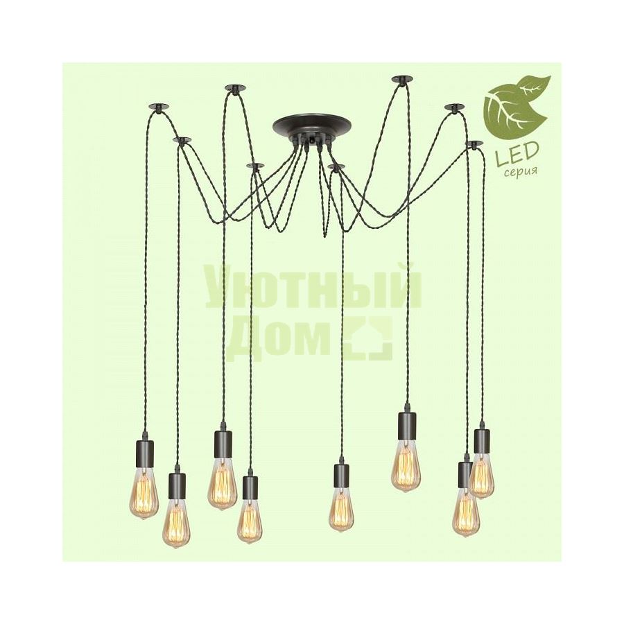 Гарантия, месяцы: 24; Диапазон рабочих температур: +1-[+35]; Класс электробезопасности: I; Материал арматуры: металл; Напряжение питания лампы, В: 220; Основной материал арматуры: металл; Тип цоколя лампы: E27; Тип цоколя лампы основной: E27; Поверхность арматуры: матовый; Общее кол-во ламп: 8; Основной цвет арматуры: черный; Цвет арматуры: черный; Возможность подключения диммера: нельзя; Тип лампы: светодиодная [LED]; Тип лампы основной: светоди...