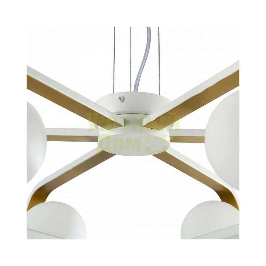 Диапазон рабочих температур: +1-[+35]; Класс электробезопасности: I; Лампы в комплекте: отсутствуют; Максимальная мощность лампы, Вт: 40; Материал арматуры: металл; Материал плафонов и подвесок: стекло; Направление плафонов: в стороны; Напряжение питания лампы, В: 220; Основной материал арматуры: металл; Основной материал плафонов: стекло; Основной цвет арматуры: золото; Степень пылевлагозащиты, IP: 20; Стиль: модерн; Основной цвет плафонов: белы...