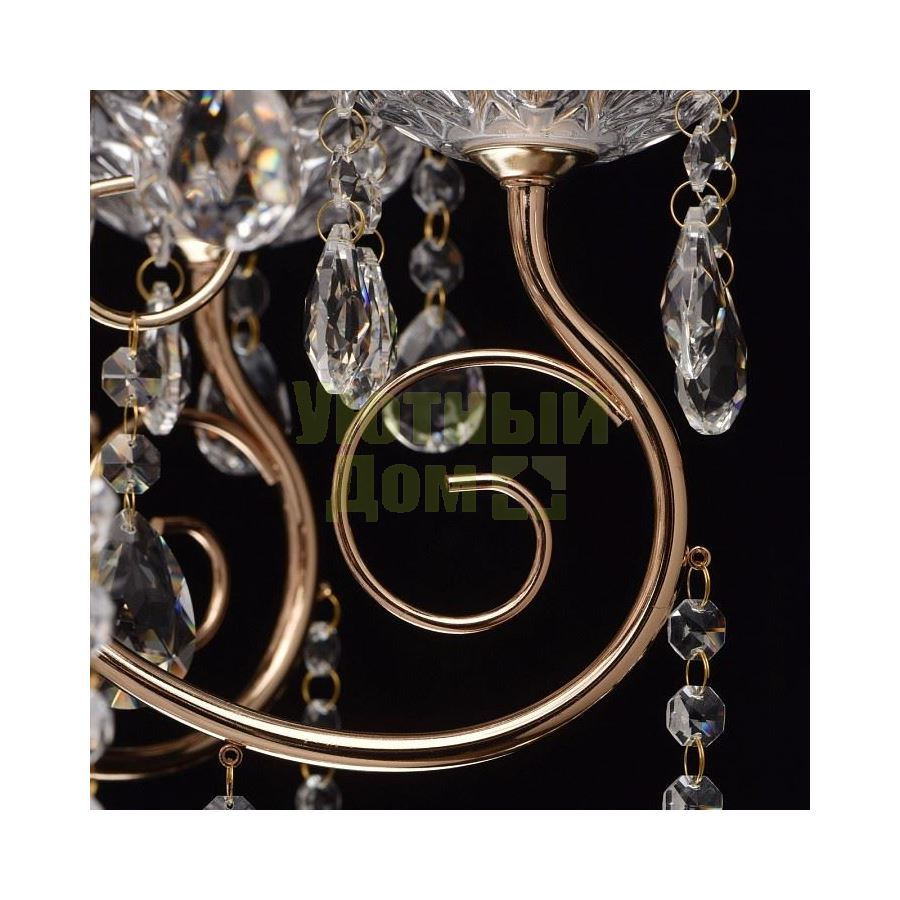 Возможность подключения диммера: можно, если установить лампу накаливания; Гарантия, месяцы: 24; Диапазон рабочих температур: +1-[+35]; Класс электробезопасности: I; Лампы в комплекте: отсутствуют; Максимальная мощность лампы, Вт: 40; Напряжение питания лампы, В: 220; Основной материал арматуры: металл; Основной цвет арматуры: золото; Основной цвет плафонов: прозрачный; Степень пылевлагозащиты, IP: 20; Тип лампы: накаливания ИЛИ светодиодная [LED...