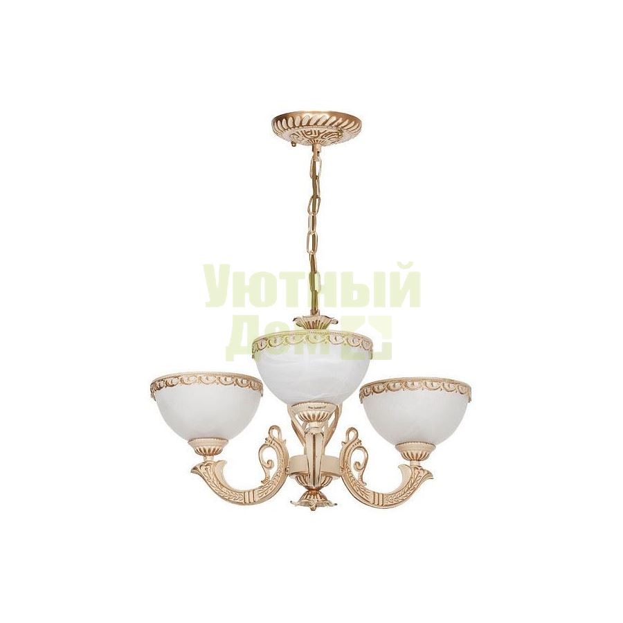 Лампы в комплекте: отсутствуют; Материал арматуры: металл; Материал плафонов и подвесок: стекло; Основной материал арматуры: металл; Основной материал плафонов: стекло; Основной цвет арматуры: золото; Степень пылевлагозащиты, IP: 20; Тип лампы: накаливания ИЛИ светодиодная [LED]; Тип лампы основной: накаливания; Тип цоколя лампы: E27; Тип цоколя лампы основной: E27; Цвет арматуры: золото; Количество плафонов: 3; Максимальная мощность лампы, Вт: 6...