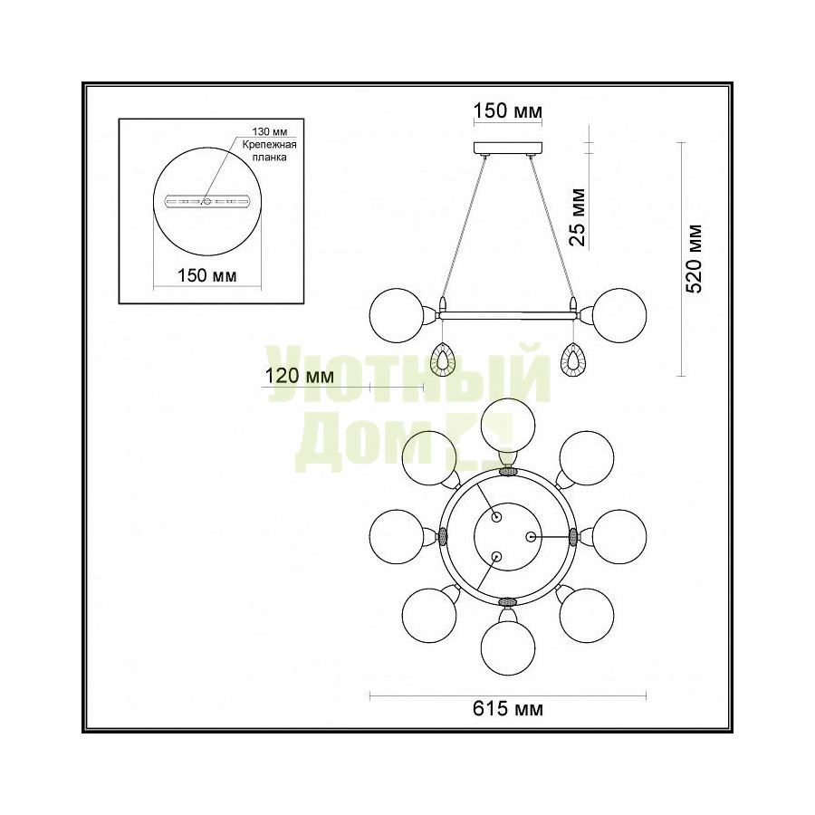 Диапазон рабочих температур: +1-[+35]; Класс электробезопасности: I; Лампы в комплекте: отсутствуют; Максимальная мощность лампы, Вт: 40; Материал арматуры: металл; Материал плафонов и подвесок: стекло; Напряжение питания лампы, В: 220; Основной материал арматуры: металл; Основной материал плафонов: стекло; Степень пылевлагозащиты, IP: 20; Поверхность арматуры: глянцевый; Направление плафонов: вниз; Количество плафонов: 8; Общее кол-во ламп: 8; В...