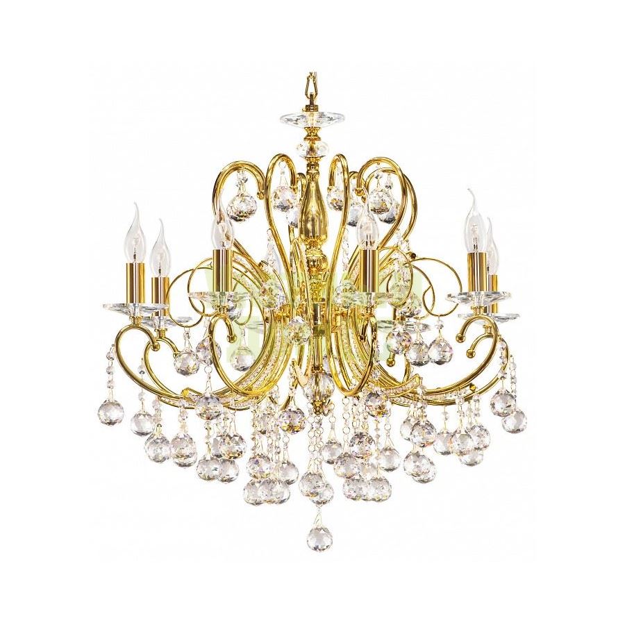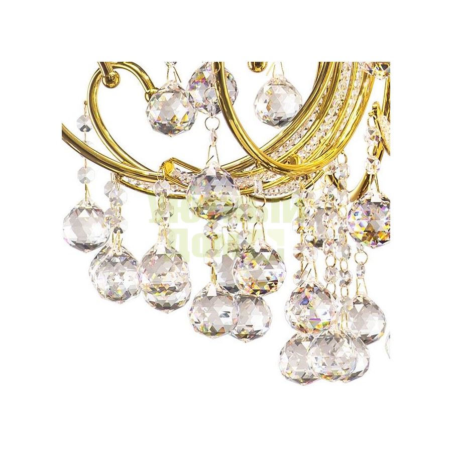 Возможность подключения диммера: можно, если установить лампу накаливания; Гарантия, месяцы: 24; Диапазон рабочих температур: +1-[+35]; Класс электробезопасности: I; Лампы в комплекте: отсутствуют; Материал арматуры: металл; Напряжение питания лампы, В: 220; Основной материал арматуры: металл; Основной цвет арматуры: золото; Основной цвет плафонов: прозрачный; Степень пылевлагозащиты, IP: 20; Тип лампы: накаливания ИЛИ светодиодная [LED]; Тип лам...