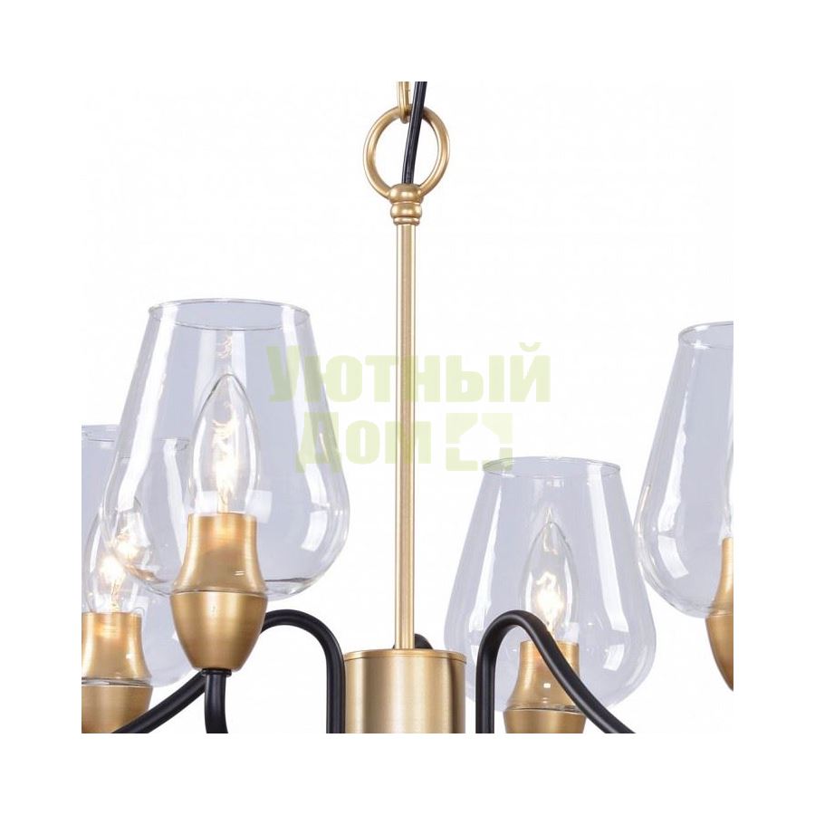Возможность подключения диммера: можно, если установить лампу накаливания; Гарантия, месяцы: 24; Диапазон рабочих температур: +1-[+35]; Класс электробезопасности: I; Лампы в комплекте: отсутствуют; Максимальная мощность лампы, Вт: 40; Материал арматуры: металл; Материал плафонов и подвесок: стекло; Напряжение питания лампы, В: 220; Основной материал арматуры: металл; Основной материал плафонов: стекло; Основной цвет арматуры: золото; Основной цве...