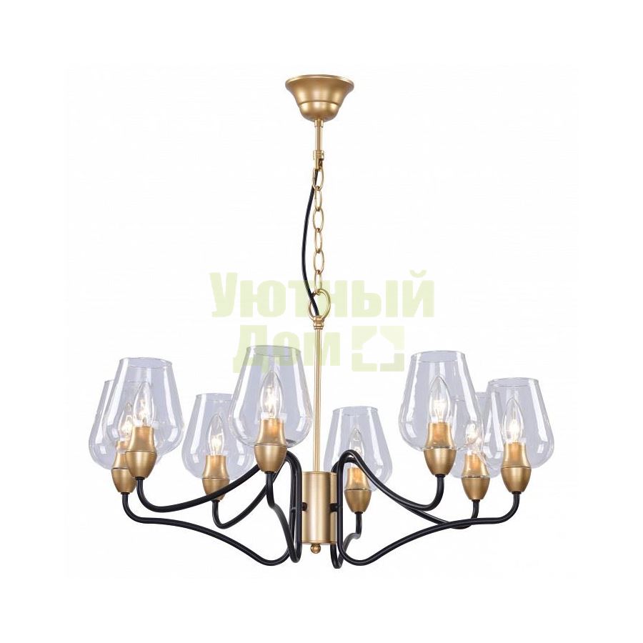 Возможность подключения диммера: можно, если установить лампу накаливания; Гарантия, месяцы: 24; Диапазон рабочих температур: +1-[+35]; Класс электробезопасности: I; Лампы в комплекте: отсутствуют; Максимальная мощность лампы, Вт: 40; Материал арматуры: металл; Материал плафонов и подвесок: стекло; Напряжение питания лампы, В: 220; Основной материал арматуры: металл; Основной материал плафонов: стекло; Основной цвет арматуры: золото; Основной цве...