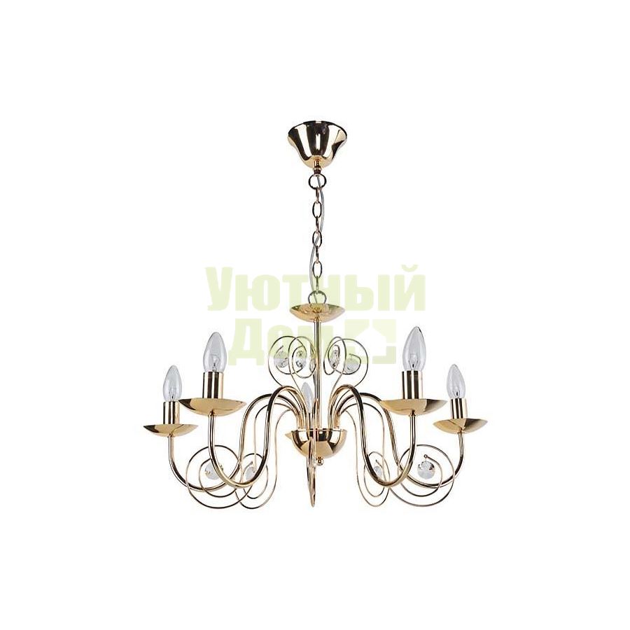 Возможность подключения диммера: можно, если установить лампу накаливания; Диапазон рабочих температур: +1-[+35]; Класс электробезопасности: I; Лампы в комплекте: отсутствуют; Материал арматуры: металл; Напряжение питания лампы, В: 220; Основной материал арматуры: металл; Основной цвет арматуры: золото; Основной цвет плафонов: прозрачный; Степень пылевлагозащиты, IP: 20; Тип лампы: накаливания ИЛИ светодиодная [LED]; Тип лампы основной: накаливан...