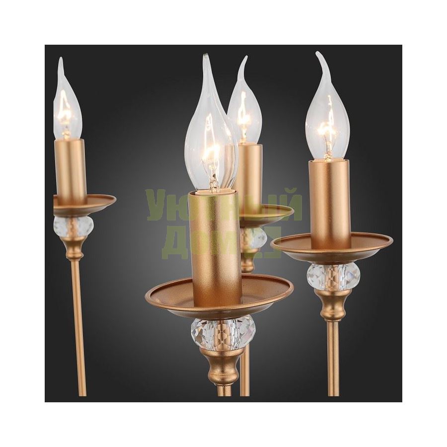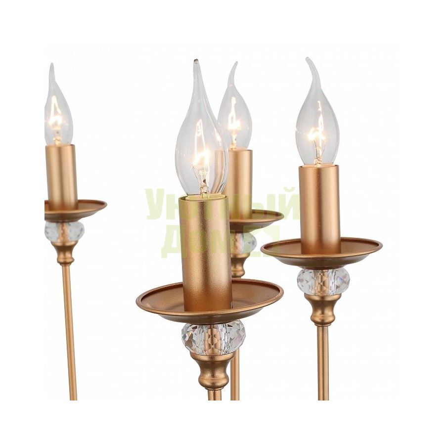 Возможность подключения диммера: можно, если установить лампу накаливания; Гарантия, месяцы: 24; Диапазон рабочих температур: +1-[+35]; Класс электробезопасности: I; Лампы в комплекте: отсутствуют; Максимальная мощность лампы, Вт: 40; Напряжение питания лампы, В: 220; Основной материал арматуры: металл; Основной цвет арматуры: золото; Степень пылевлагозащиты, IP: 20; Тип лампы: накаливания ИЛИ светодиодная [LED]; Тип лампы основной: накаливания; ...