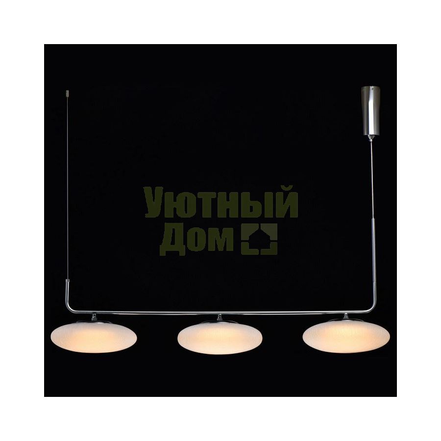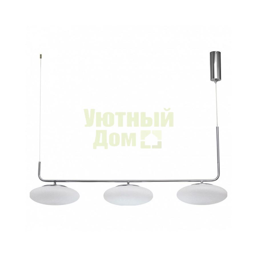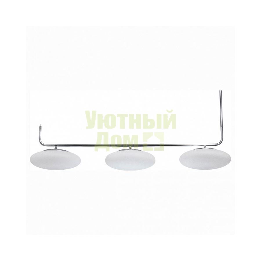 Гарантия, месяцы: 24; Диапазон рабочих температур: +1-[+35]; Класс электробезопасности: I; Материал арматуры: металл; Материал плафонов и подвесок: стекло; Напряжение питания лампы, В: 220; Основной материал арматуры: металл; Основной материал плафонов: стекло; Степень пылевлагозащиты, IP: 20; Стиль: модерн; Количество плафонов: 3; Направление плафонов: вниз; Общее кол-во ламп: 3; Основной цвет плафонов: белый; Поверхность плафонов и подвесок: м...