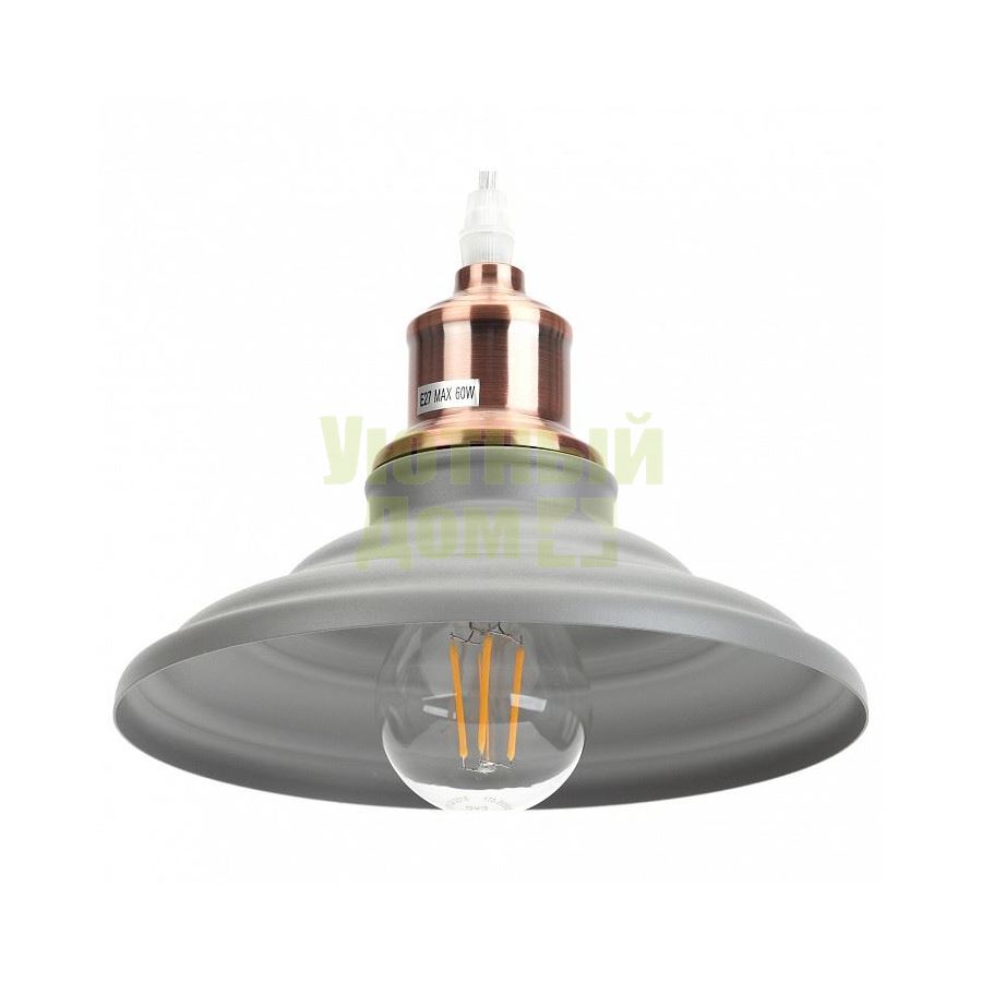 Возможность подключения диммера: можно, если установить лампу накаливания; Гарантия, месяцы: 24; Диапазон рабочих температур: +1-[+35]; Количество плафонов: 1; Лампы в комплекте: отсутствуют; Материал арматуры: металл; Материал плафонов и подвесок: металл; Напряжение питания лампы, В: 220; Общее кол-во ламп: 1; Основной материал арматуры: металл; Основной материал плафонов: металл; Основной цвет арматуры: серый; Основной цвет плафонов: серый; Пов...