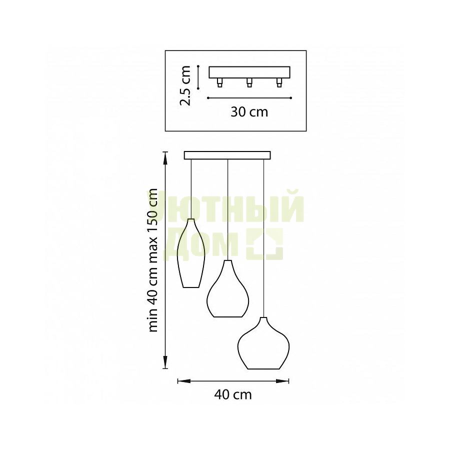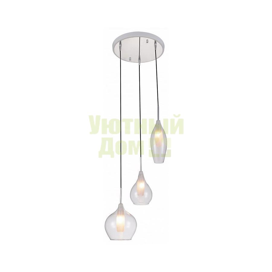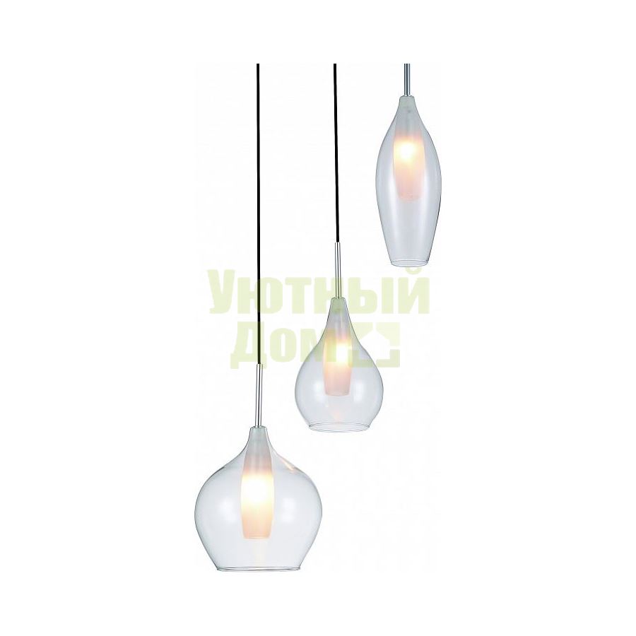 Гарантия, месяцы: 24; Диапазон рабочих температур: +1-[+35]; Класс электробезопасности: I; Лампы в комплекте: отсутствуют; Материал арматуры: металл; Материал плафонов и подвесок: стекло; Напряжение питания лампы, В: 220; Основной материал арматуры: металл; Основной материал плафонов: стекло; Основной цвет плафонов: прозрачный; Степень пылевлагозащиты, IP: 20; Стиль: модерн; Поверхность арматуры: глянцевый; Количество плафонов: 3; Общее кол-во ла...