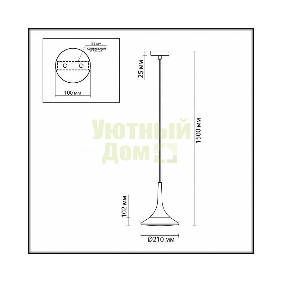 Гарантия, месяцы: 24; Диапазон рабочих температур: +1-[+35]; Класс электробезопасности: I; Количество плафонов: 1; Лампы в комплекте: отсутствуют; Материал арматуры: металл; Материал плафонов и подвесок: металл; Напряжение питания лампы, В: 220; Общее кол-во ламп: 1; Основной материал арматуры: металл; Основной материал плафонов: металл; Степень пылевлагозащиты, IP: 20; Направление плафонов: вниз; Поверхность плафонов и подвесок: прозрачный; Сти...