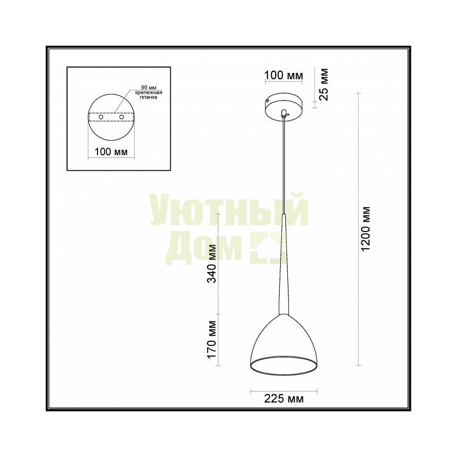 Возможность подключения диммера: можно, если установить лампу накаливания; Диапазон рабочих температур: +1-[+35]; Класс электробезопасности: I; Количество плафонов: 1; Лампы в комплекте: отсутствуют; Материал арматуры: металл; Напряжение питания лампы, В: 220; Общее кол-во ламп: 1; Основной материал арматуры: металл; Поверхность плафонов и подвесок: матовый; Степень пылевлагозащиты, IP: 20; Тип лампы: накаливания ИЛИ светодиодная [LED]; Тип ламп...