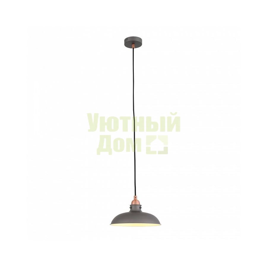 Возможность подключения диммера: можно, если установить лампу накаливания; Гарантия, месяцы: 24; Диапазон рабочих температур: +1-[+35]; Класс электробезопасности: I; Количество плафонов: 1; Лампы в комплекте: отсутствуют; Материал арматуры: металл; Материал плафонов и подвесок: металл; Напряжение питания лампы, В: 220; Общее кол-во ламп: 1; Основной материал арматуры: металл; Основной материал плафонов: металл; Основной цвет плафонов: серый; Пове...