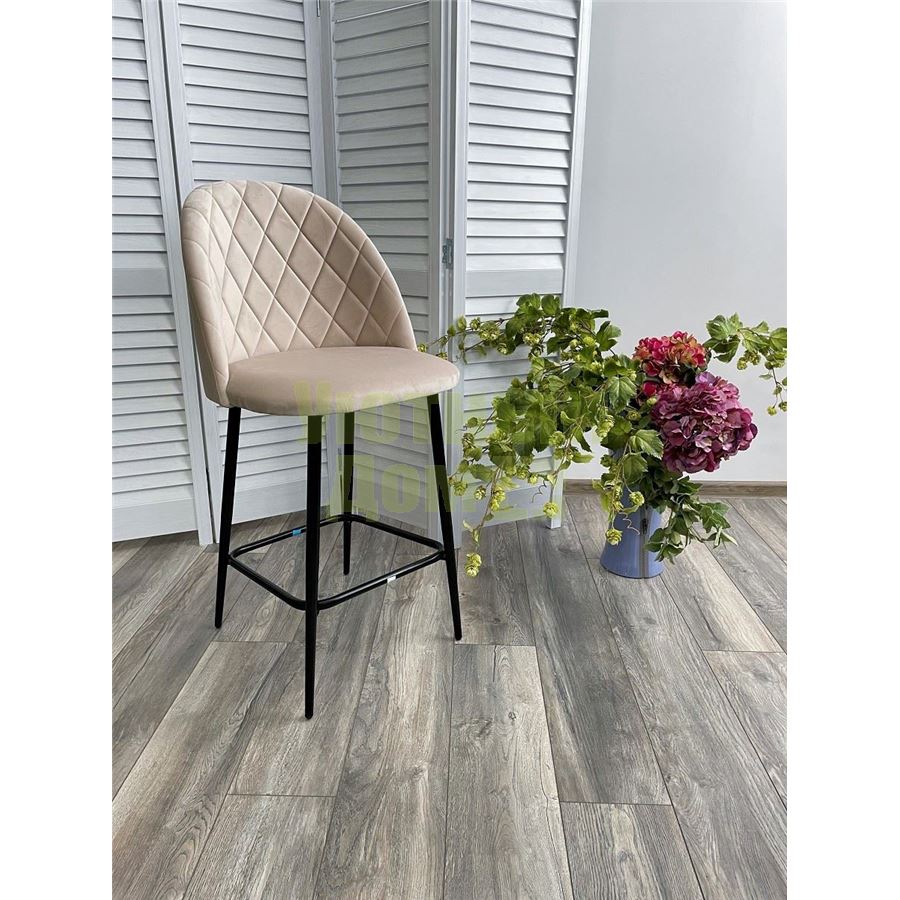 Полубарный стул НИРВАНА, цвет светло-бежевый B-02, велюр / черный каркас H=63cm М-City в стиле: Современный отлично дополнит интерьер таких помещений как : Кухня, гостиная.