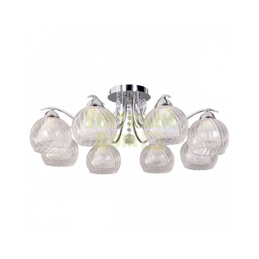 Гарантия, месяцы: 24; Диапазон рабочих температур: +1-[+35]; Класс электробезопасности: I; Материал арматуры: металл; Направление плафонов: вниз; Напряжение питания лампы, В: 220; Основной материал арматуры: металл; Степень пылевлагозащиты, IP: 20; Основной цвет арматуры: хром; Поверхность арматуры: глянцевый; Цвет арматуры: хром; Количество плафонов: 8; Общее кол-во ламп: 8; Цвет плафонов и подвесок: белый, неокрашенный; Возможность подключения ...