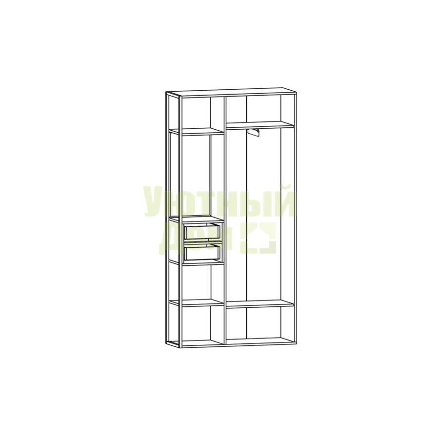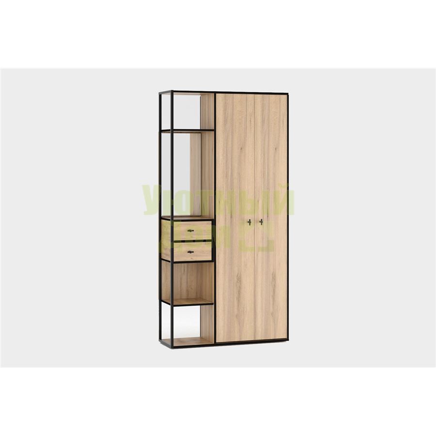 Система состоит из 2-х створчатого шкафа с выкатной штангой. А также двух выкатных ящиков и красивого зеркала с фацетом.