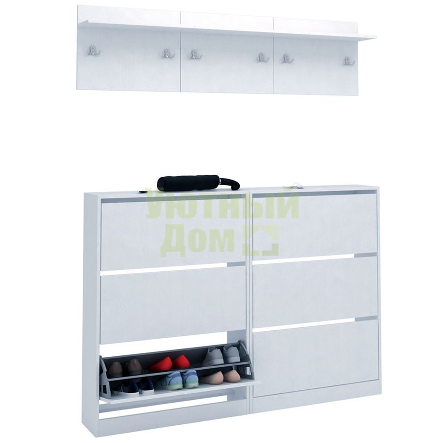 Каждый элемент возможно приобрести по отдельности. Состав комплекта: обувница Норта-7 (2 шт.), вешалка Уно-62 (3 шт.).