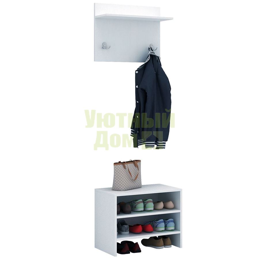 Каждый элемент возможно приобрести по отдельности. Состав комплекта: вешалка Уно-62 и обувница Уно-52. В зависимости от типа обуви, тумба для обуви способна вместить до 6 пар обуви. Аккуратные заглушки в тон мебели для скрытия технологических отверстий.