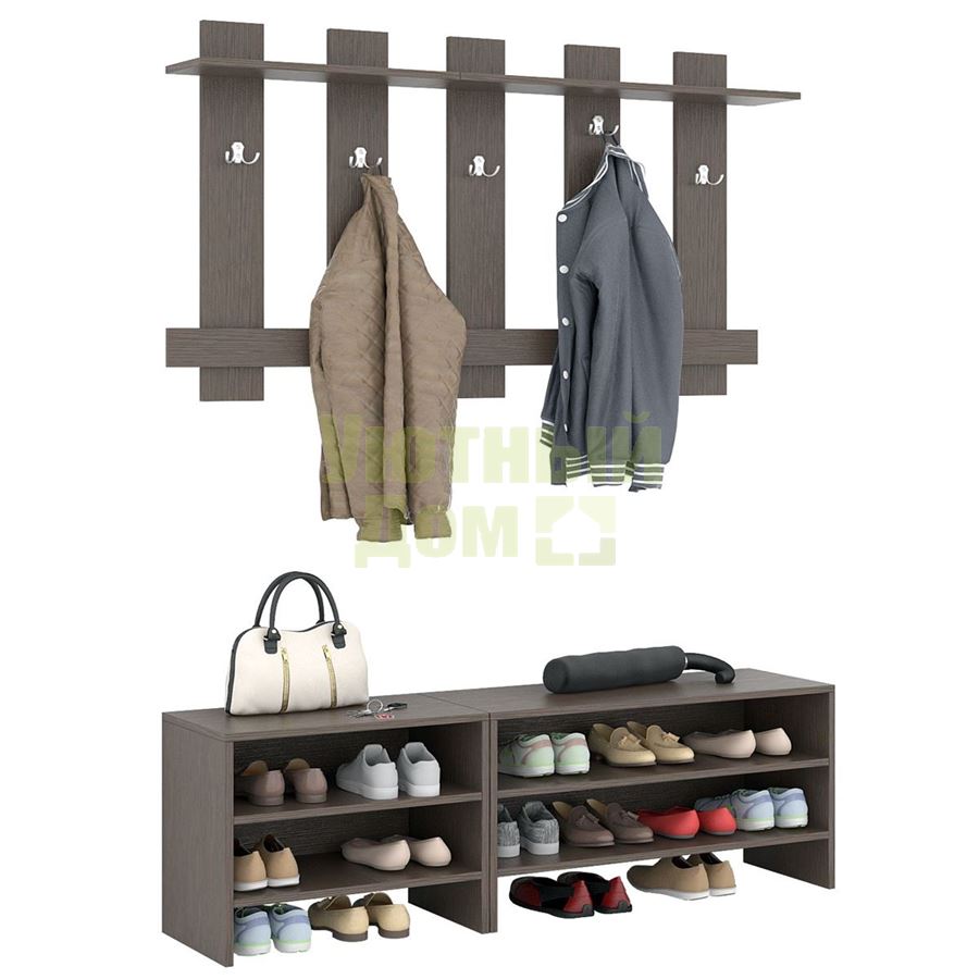 Каждый элемент возможно приобрести по отдельности. Состав комплекта: вешалки Уно-64 и Уно-65, обувницы Уно-52 и Уно-53.