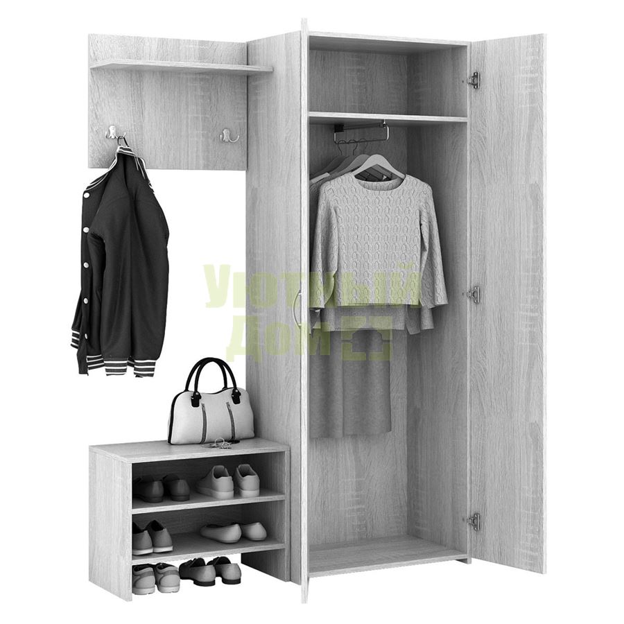 Каждый элемент возможно приобрести по отдельности. Состав комплекта: вешалка Уно-62, обувница Уно-52 и шкаф для одежды Уно-35.