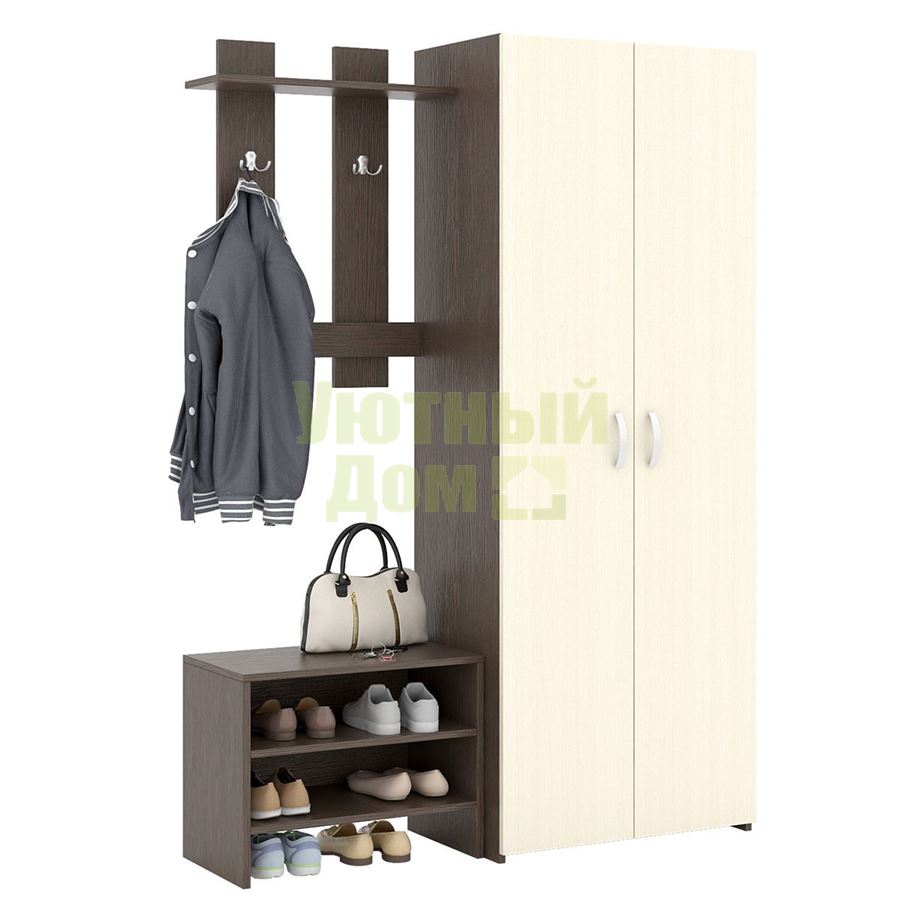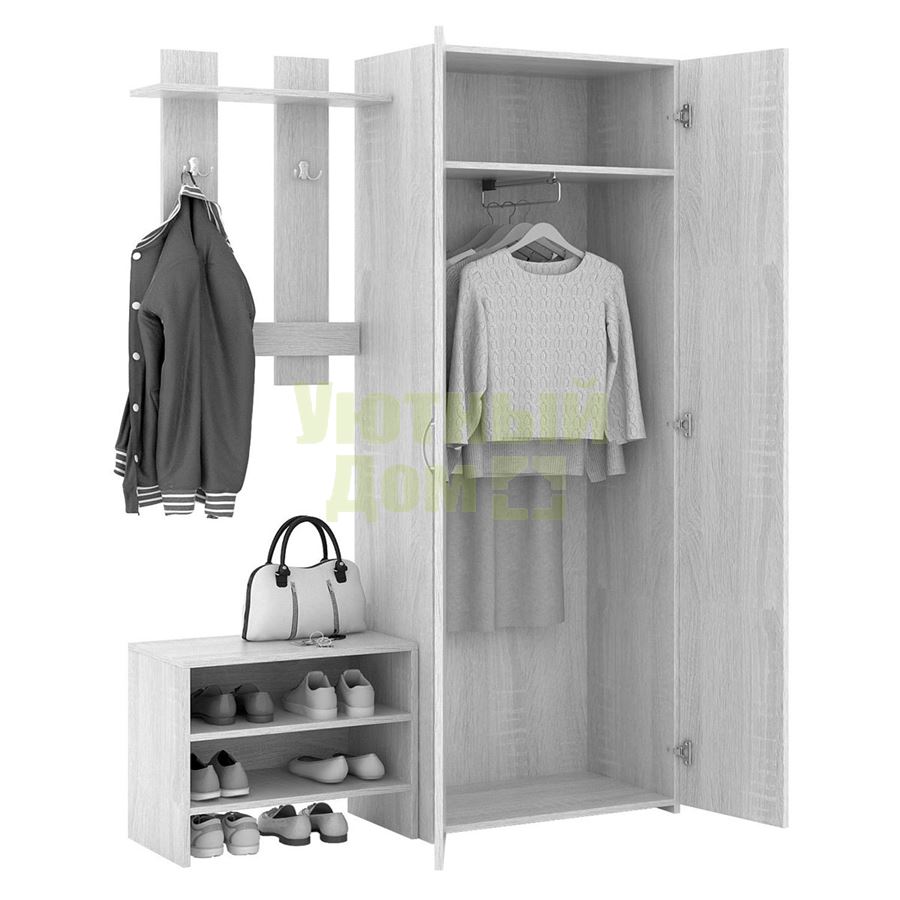 Каждый элемент возможно приобрести по отдельности. Состав комплекта: вешалка Уно-64, обувница Уно-52 и шкаф для одежды Уно-35.