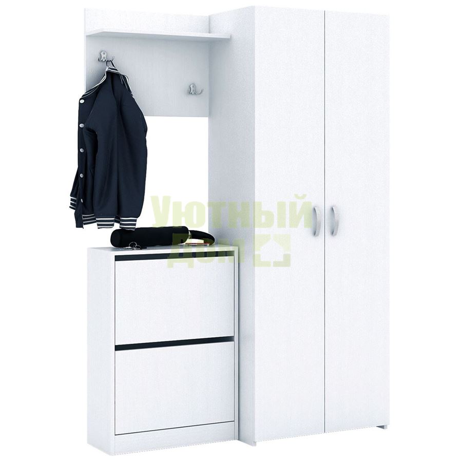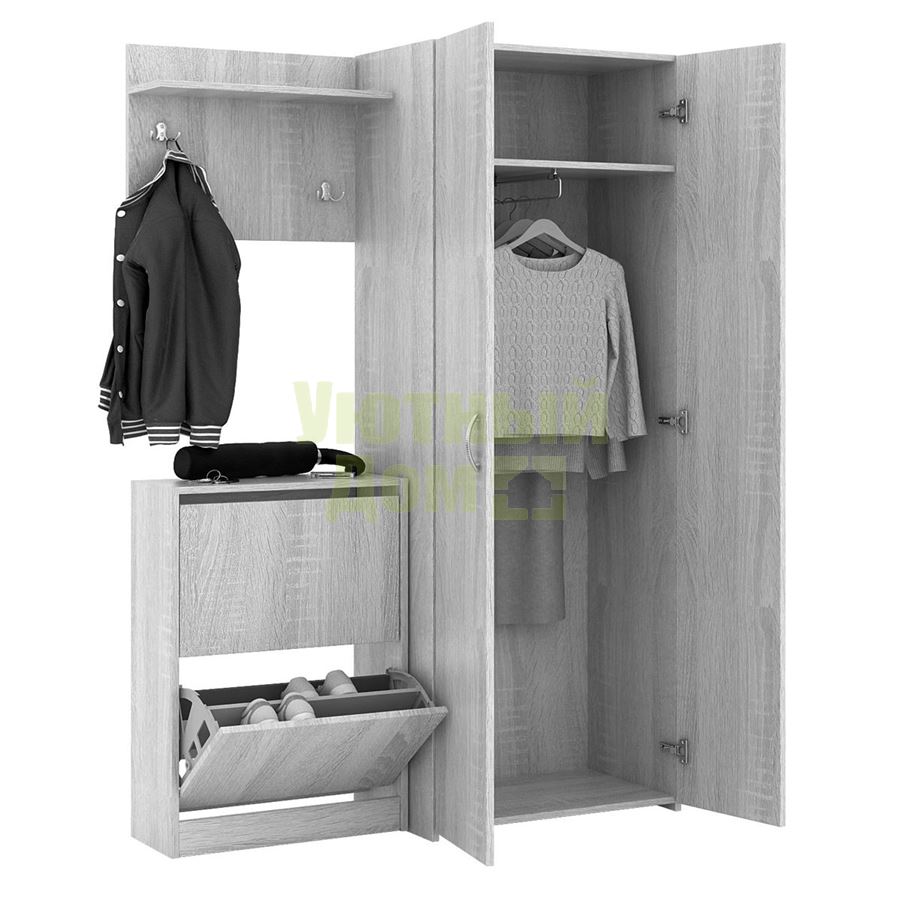 Каждый элемент возможно приобрести по отдельности. Состав комплекта: вешалка Уно-62, обувница Уно-51 и шкаф для одежды Уно-35.