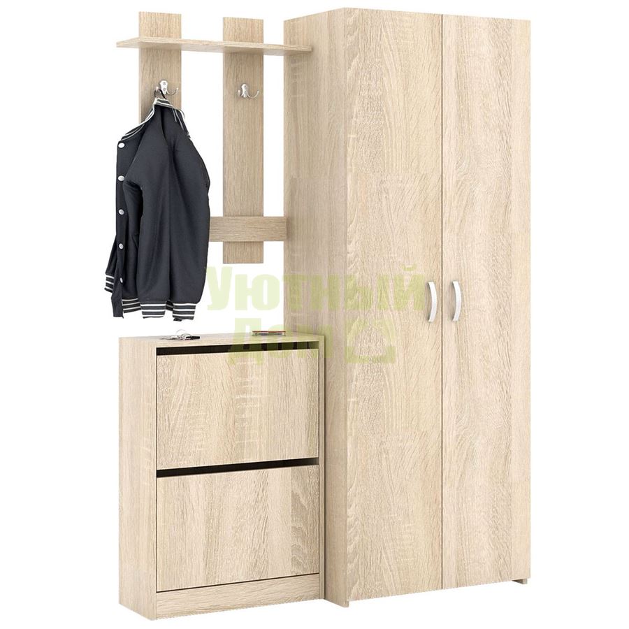 Каждый элемент возможно приобрести по отдельности. Состав комплекта: вешалка Уно-64, обувница Уно-51 и шкаф для одежды Уно-35.