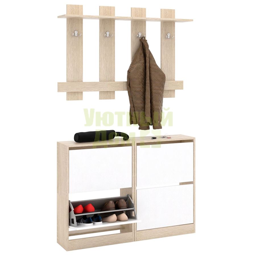 Каждый элемент возможно приобрести по отдельности. Состав комплекта: обувница Уно-51 (2 шт.), вешалка Уно-64 (2 шт.).