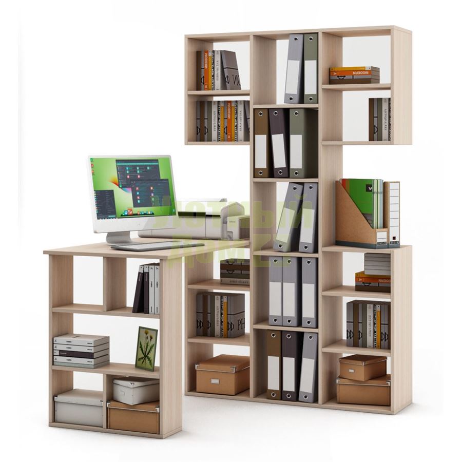 Стеллаж Феликс-3 + стол Феликс-5-Дуб-молочный