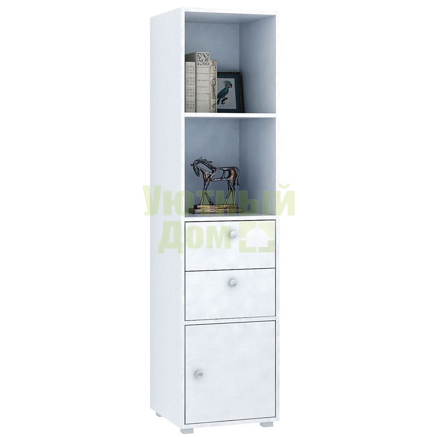 Стеллаж является комплектом модульной системы. Вы можете собрать индивидуальный комплект из корпуса и наполнения (дверок, блока ящиков, ящиков со стеклом или больших ящиков). Тип ручки: кнопка. Декоративные заглушки в тон мебели. Пластиковые опоры в комплекте. В выдвижных ящиках используются качественные роликовые направляющие. Сборку данного товара желательно осуществлять вдвоем во избежание травмоопасных ситуаций или механических повреждений мебели. Рекомендуем крепить к стене, чтобы предотвратить случайное опрокидывание мебели. Для разных стен требуются различные крепежи. Подберите подходящие для ваших стен шурупы, дюбели, саморезы и т. п. (не входят в комплект фурнитуры). Комплект состоит из: стеллажа Прайм-41 (1 шт.), дверцы Прайм (1 шт.), блока ящиков Прайм (1 шт.).