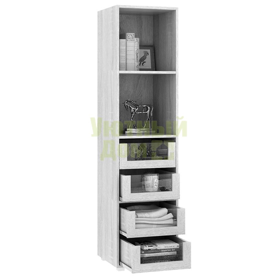 Стеллаж является комплектом модульной системы. Вы можете собрать индивидуальный комплект из корпуса и наполнения (дверок, блока ящиков, ящиков со стеклом или больших ящиков). Декоративные заглушки в тон мебели. Пластиковые опоры в комплекте. В выдвижных ящиках используются качественные роликовые направляющие. Сборку данного товара желательно осуществлять вдвоем во избежание травмоопасных ситуаций или механических повреждений мебели. Рекомендуем крепить к стене, чтобы предотвратить случайное опрокидывание мебели. Для разных стен требуются различные крепежи. Подберите подходящие для ваших стен шурупы, дюбели, саморезы и т. п. (не входят в комплект фурнитуры). Комплект состоит из: стеллажа Прайм-41 (1 шт.), блока ящиков со стеклом Прайм (2 шт.).