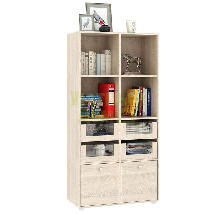 Стеллаж является комплектом модульной системы. Вы можете собрать индивидуальный комплект из корпуса и наполнения (дверок, блока ящиков, ящиков со стеклом или больших ящиков). Тип ручки: кнопка. Декоративные заглушки в тон мебели. Пластиковые опоры в комплекте. В выдвижных ящиках используются качественные роликовые направляющие. Сборку данного товара желательно осуществлять вдвоем во избежание травмоопасных ситуаций или механических повреждений мебели. Рекомендуем крепить к стене, чтобы предотвратить случайное опрокидывание мебели. Для разных стен требуются различные крепежи. Подберите подходящие для ваших стен шурупы, дюбели, саморезы и т. п. (не входят в комплект фурнитуры). Комплект состоит из: стеллажа Прайм-42 (1 шт.), блока ящиков со стеклом Прайм (2 шт.), большого ящика Прайм (2 шт.).
