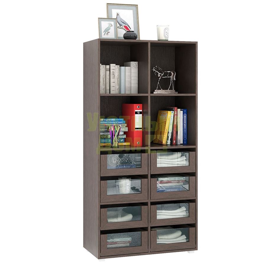 Стеллаж является комплектом модульной системы. Вы можете собрать индивидуальный комплект из корпуса и наполнения (дверок, блока ящиков, ящиков со стеклом или больших ящиков). Декоративные заглушки в тон мебели. Пластиковые опоры в комплекте. В выдвижных ящиках используются качественные роликовые направляющие. Сборку данного товара желательно осуществлять вдвоем во избежание травмоопасных ситуаций или механических повреждений мебели. Рекомендуем крепить к стене, чтобы предотвратить случайное опрокидывание мебели. Для разных стен требуются различные крепежи. Подберите подходящие для ваших стен шурупы, дюбели, саморезы и т. п. (не входят в комплект фурнитуры). Комплект состоит из: стеллажа Прайм-42 (1 шт.), блока ящиков со стеклом Прайм (4 шт.).
