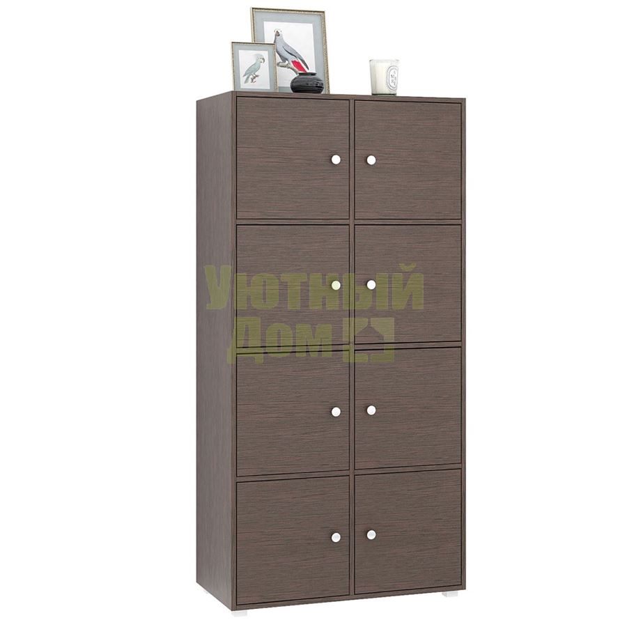 Стеллаж является комплектом модульной системы. Вы можете собрать индивидуальный комплект из корпуса и наполнения (дверок, блока ящиков, ящиков со стеклом или больших ящиков). Тип ручки: кнопка. Декоративные заглушки в тон мебели. Пластиковые опоры в комплекте. Сборку данного товара желательно осуществлять вдвоем во избежание травмоопасных ситуаций или механических повреждений мебели. Рекомендуем крепить к стене, чтобы предотвратить случайное опрокидывание мебели. Для разных стен требуются различные крепежи. Подберите подходящие для ваших стен шурупы, дюбели, саморезы и т. п. (не входят в комплект фурнитуры). Комплект состоит из: стеллажа Прайм-42 (1 шт.), дверцы Прайм (8 шт.).