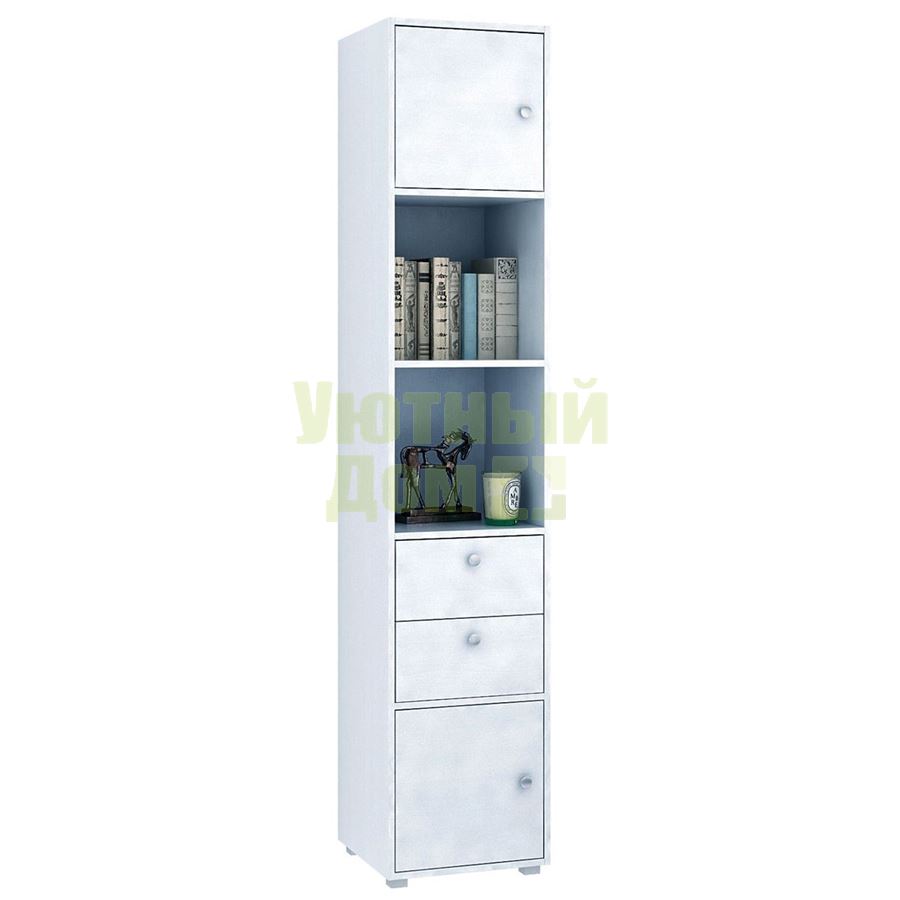 Стеллаж является комплектом модульной системы. Вы можете собрать индивидуальный комплект из корпуса и наполнения (дверок, блока ящиков, ящиков со стеклом или больших ящиков). Тип ручки: кнопка. Декоративные заглушки в тон мебели. Пластиковые опоры в комплекте. В выдвижных ящиках используются качественные роликовые направляющие. Сборку данного товара желательно осуществлять вдвоем во избежание травмоопасных ситуаций или механических повреждений мебели. Рекомендуем крепить к стене, чтобы предотвратить случайное опрокидывание мебели. Для разных стен требуются различные крепежи. Подберите подходящие для ваших стен шурупы, дюбели, саморезы и т. п. (не входят в комплект фурнитуры). Комплект состоит из: стеллажа Прайм-51 (1 шт.), дверцы Прайм (2 шт.), блока ящиков Прайм (1 шт.).