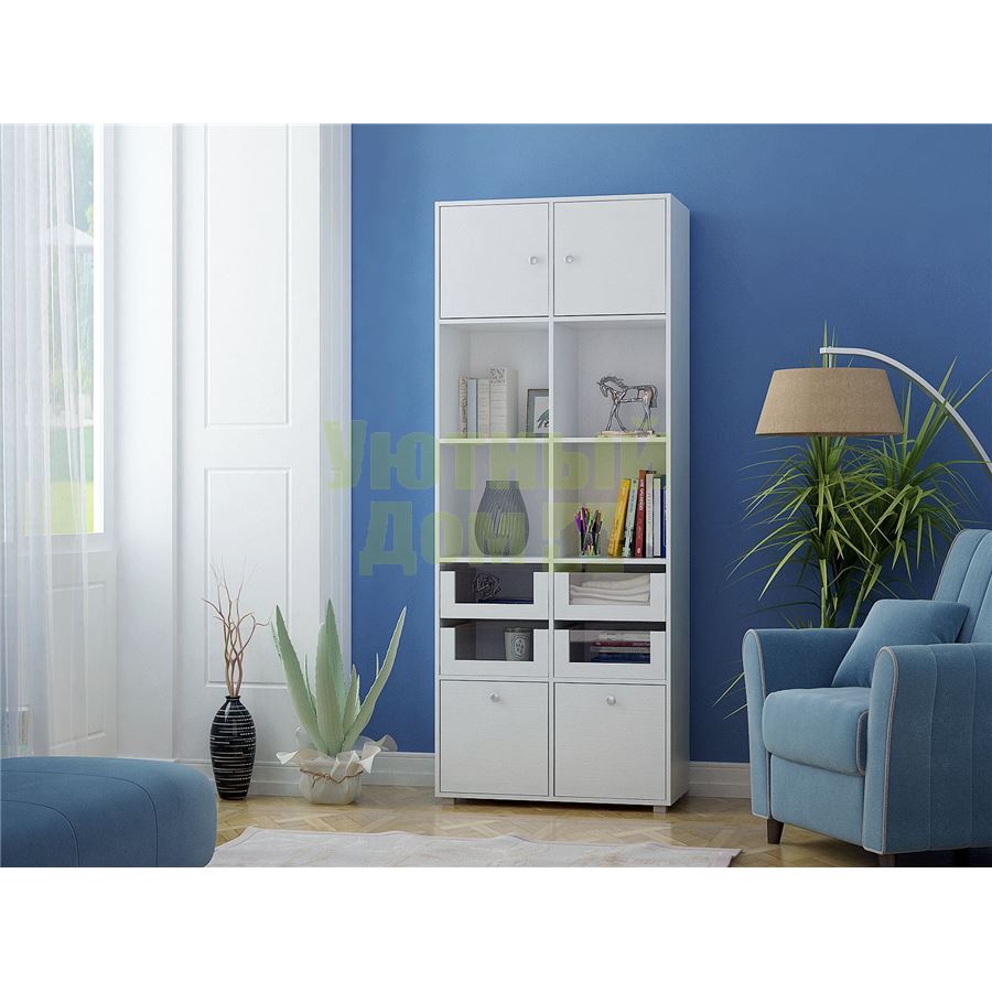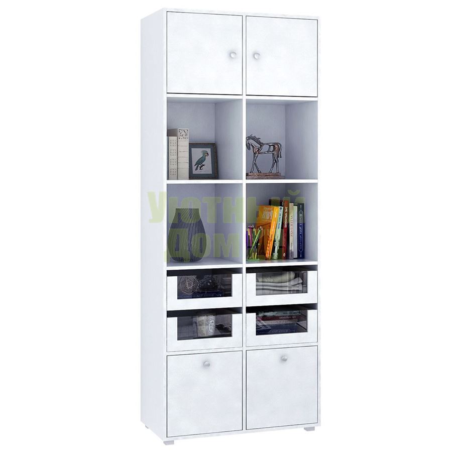 Стеллаж является комплектом модульной системы. Вы можете собрать индивидуальный комплект из корпуса и наполнения (дверок, блока ящиков, ящиков со стеклом или больших ящиков). Тип ручки: кнопка. Декоративные заглушки в тон мебели. Пластиковые опоры в комплекте. В выдвижных ящиках используются качественные роликовые направляющие. Сборку данного товара желательно осуществлять вдвоем во избежание травмоопасных ситуаций или механических повреждений мебели. Рекомендуем крепить к стене, чтобы предотвратить случайное опрокидывание мебели. Для разных стен требуются различные крепежи. Подберите подходящие для ваших стен шурупы, дюбели, саморезы и т. п. (не входят в комплект фурнитуры). Комплект состоит из: стеллажа Прайм-52 (1 шт.), дверцы Прайм (2 шт.), блока ящиков со стеклом Прайм (2 шт.), большого ящика Прайм (2 шт.).