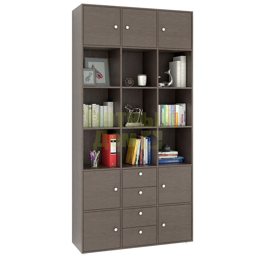 Стеллаж является комплектом модульной системы. Вы можете собрать индивидуальный комплект из корпуса и наполнения (дверок, блока ящиков, ящиков со стеклом или больших ящиков). Тип ручки: кнопка. Декоративные заглушки в тон мебели. Пластиковые опоры в комплекте. В выдвижных ящиках используются качественные роликовые направляющие. Сборку данного товара желательно осуществлять вдвоем во избежание травмоопасных ситуаций или механических повреждений мебели. Рекомендуем крепить к стене, чтобы предотвратить случайное опрокидывание мебели. Для разных стен требуются различные крепежи. Подберите подходящие для ваших стен шурупы, дюбели, саморезы и т. п. (не входят в комплект фурнитуры). Комплект состоит из: стеллажа Прайм-63 (1 шт.), дверцы Прайм (7 шт.), блока ящиков Прайм (2 шт.).