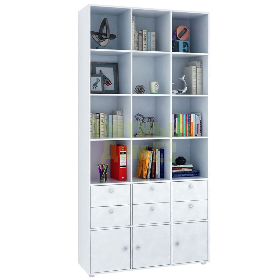 Стеллаж является комплектом модульной системы. Вы можете собрать индивидуальный комплект из корпуса и наполнения (дверок, блока ящиков, ящиков со стеклом или больших ящиков). Тип ручки: кнопка. Декоративные заглушки в тон мебели. Пластиковые опоры в комплекте. В выдвижных ящиках используются качественные роликовые направляющие. Сборку данного товара желательно осуществлять вдвоем во избежание травмоопасных ситуаций или механических повреждений мебели. Рекомендуем крепить к стене, чтобы предотвратить случайное опрокидывание мебели. Для разных стен требуются различные крепежи. Подберите подходящие для ваших стен шурупы, дюбели, саморезы и т. п. (не входят в комплект фурнитуры). Комплект состоит из: стеллажа Прайм-63 (1 шт.), дверцы Прайм (3 шт.), блока ящиков Прайм (3 шт.).