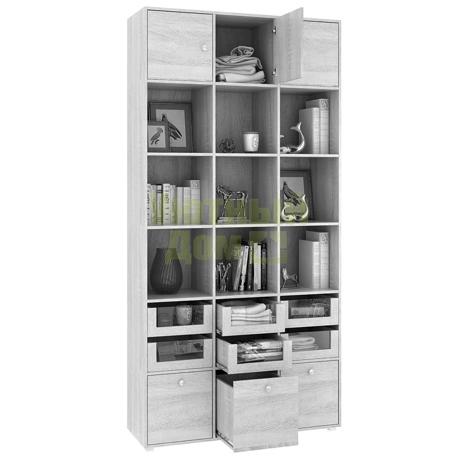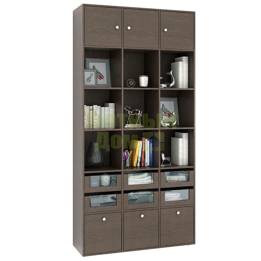 Стеллаж является комплектом модульной системы. Вы можете собрать индивидуальный комплект из корпуса и наполнения (дверок, блока ящиков, ящиков со стеклом или больших ящиков). Тип ручки: кнопка. Декоративные заглушки в тон мебели. Пластиковые опоры в комплекте. В выдвижных ящиках используются качественные роликовые направляющие. Сборку данного товара желательно осуществлять вдвоем во избежание травмоопасных ситуаций или механических повреждений мебели. Рекомендуем крепить к стене, чтобы предотвратить случайное опрокидывание мебели. Для разных стен требуются различные крепежи. Подберите подходящие для ваших стен шурупы, дюбели, саморезы и т. п. (не входят в комплект фурнитуры). Комплект состоит из: стеллажа Прайм-63 (1 шт.), дверцы Прайм (3 шт.), блока ящиков со стеклом Прайм (3 шт.), большого ящика Прайм (3 шт.).