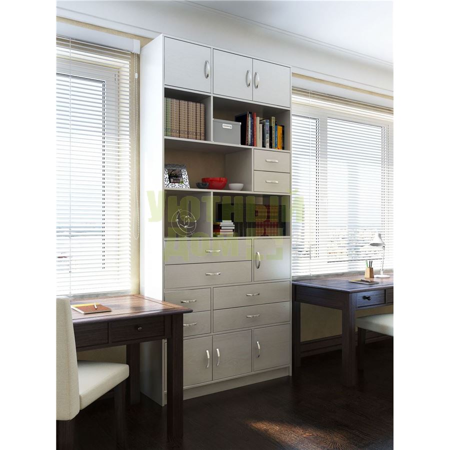 Каждую часть возможно приобрести по отдельности. Состав комплекта: стеллаж Либерти-3 (1 шт.), блок ящиков Либерти малый (2 шт.), блок ящиков Либерти большой (2 шт.), дверка для стеллажей Либерти (7 шт.).
