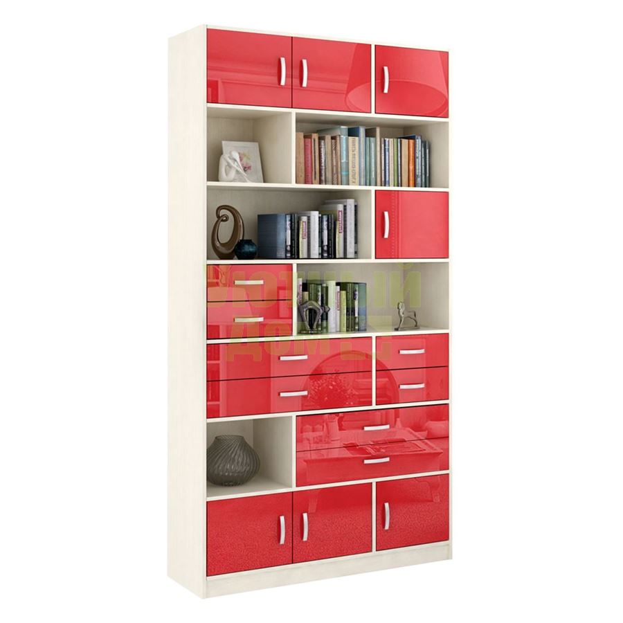 Купить Стеллаж в комплекте Либерти-31 Глянец дуб молочный / красный