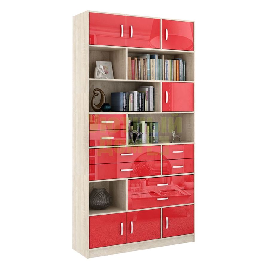 Купить Стеллаж в комплекте Либерти-31 Глянец дуб сонома / красный