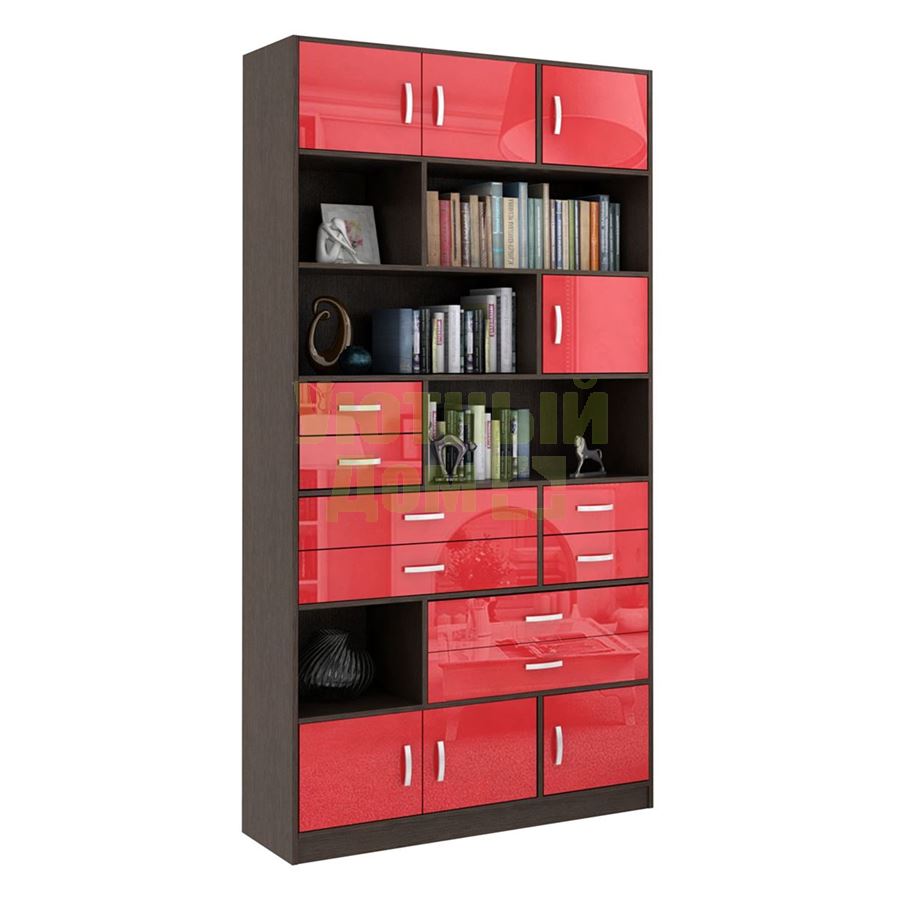 Купить Стеллаж в комплекте Либерти-31 Глянец венге / красный