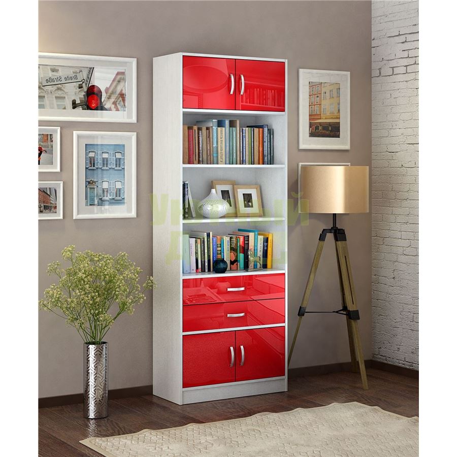 Купить Стеллаж в комплекте Либерти-51 Глянец белый / красный