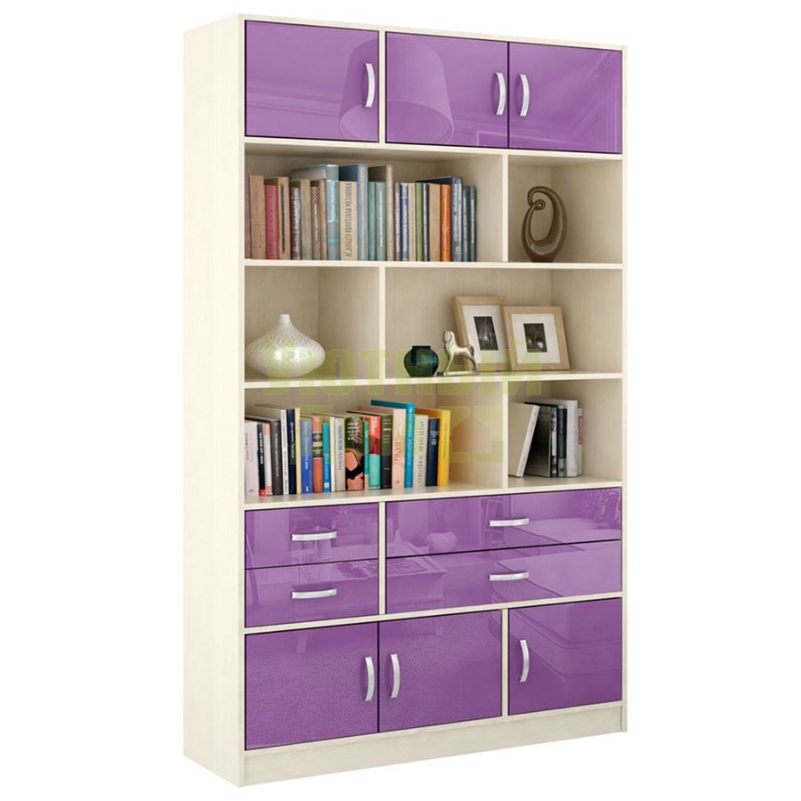 Купить Стеллаж в комплекте Либерти-62 Глянец дуб молочный / фиолетовый
