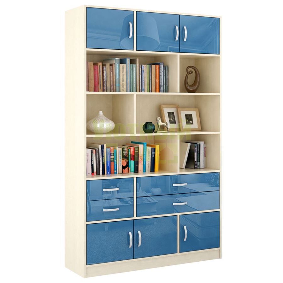 Купить Стеллаж в комплекте Либерти-62 Глянец дуб молочный / синий