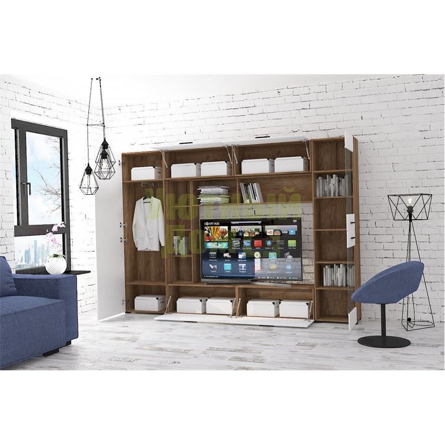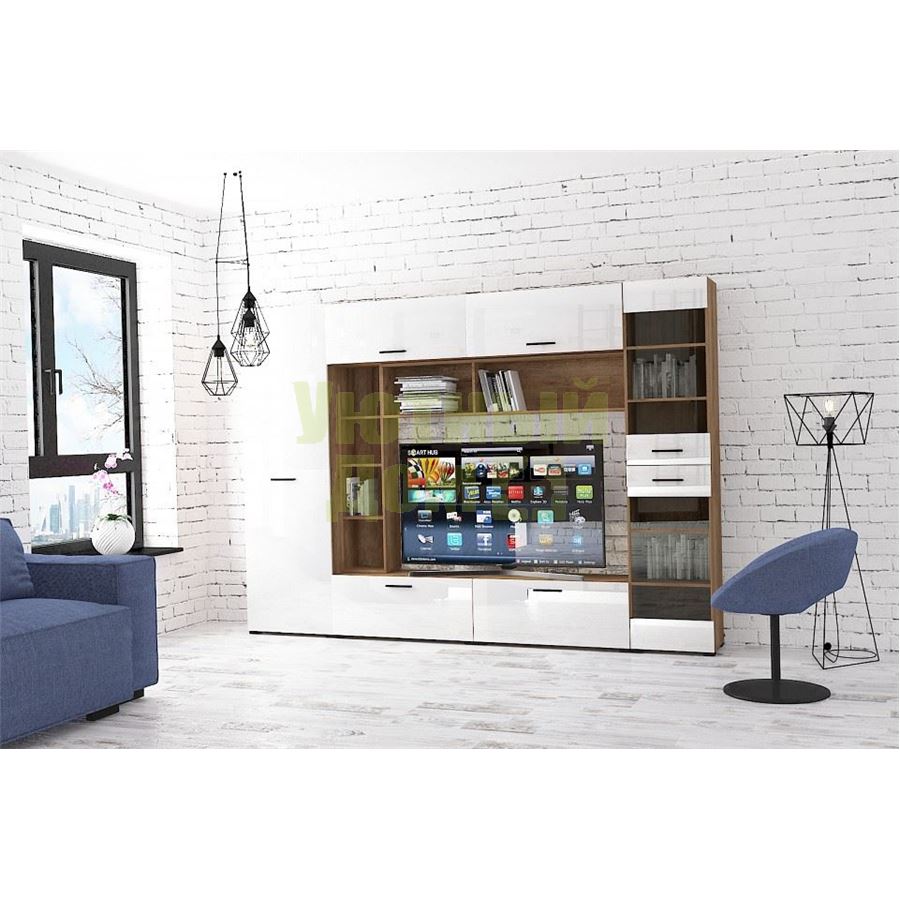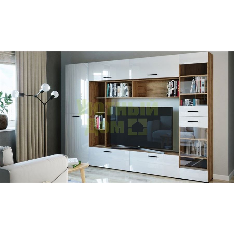 Стенка для гостиной Берн G2290 ДУБ КРАФТ + БЕЛЫЙ ГЛ